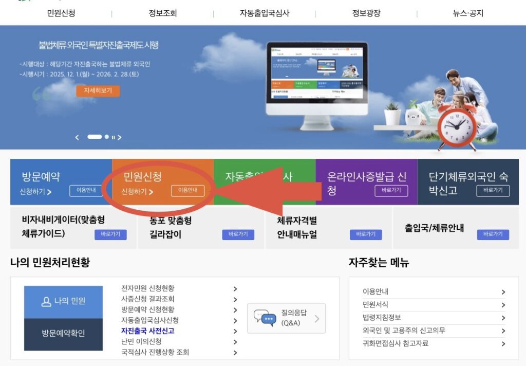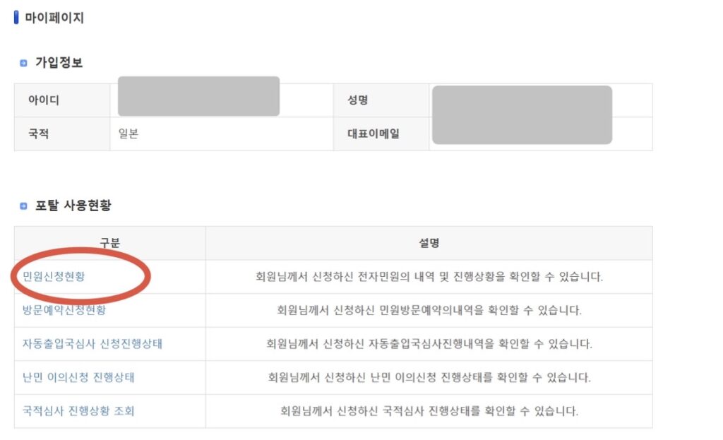 - ⑤「民願作成(민원작성)」の画面が出てくるので、空欄を埋めます。