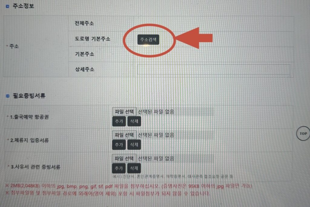 - ⑦住所入力は 「住所検索(주소검색)」 をクリック。