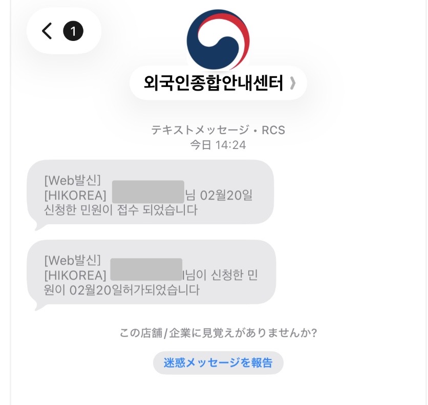 また、私はSMSでも許可のメッセージが届きました。