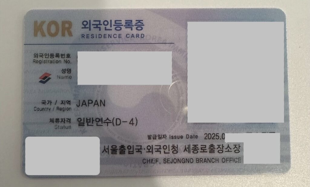 外国人登録証が発行される前に韓国を出国すると、ビザが無効になる場合があります。